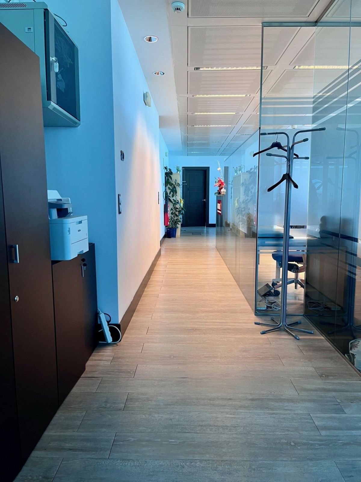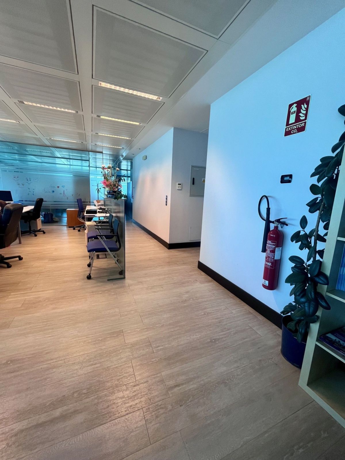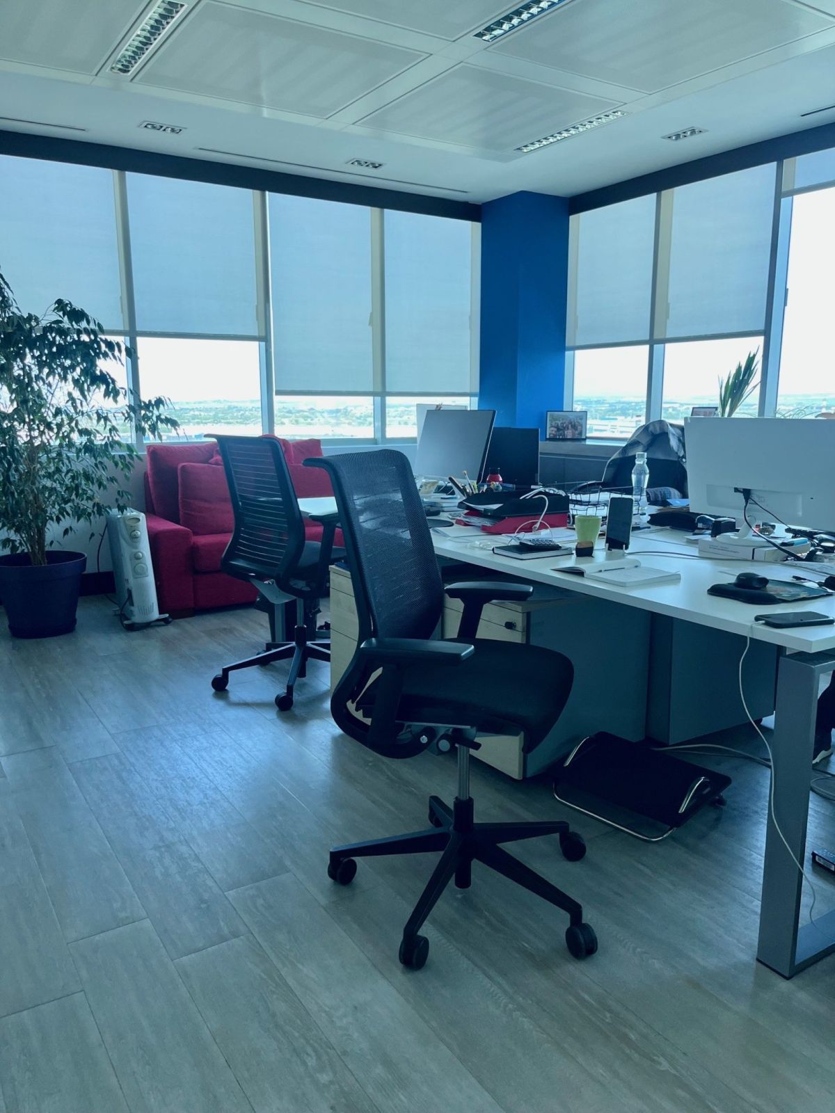 Professional workspace located on the 11th floor of Torre Garena (Alcalá de Henares), a landmark corporate building in the Henares corridor. The office spans 245 m² and features floor-to-ceiling windows throughout, ensuring abundant natural light and open views of Madrid. The space is designed for a flexible, mixed-use model, combining individual workstations with the option to rent entire spaces on specific days of the week, particularly Mondays and Fridays.