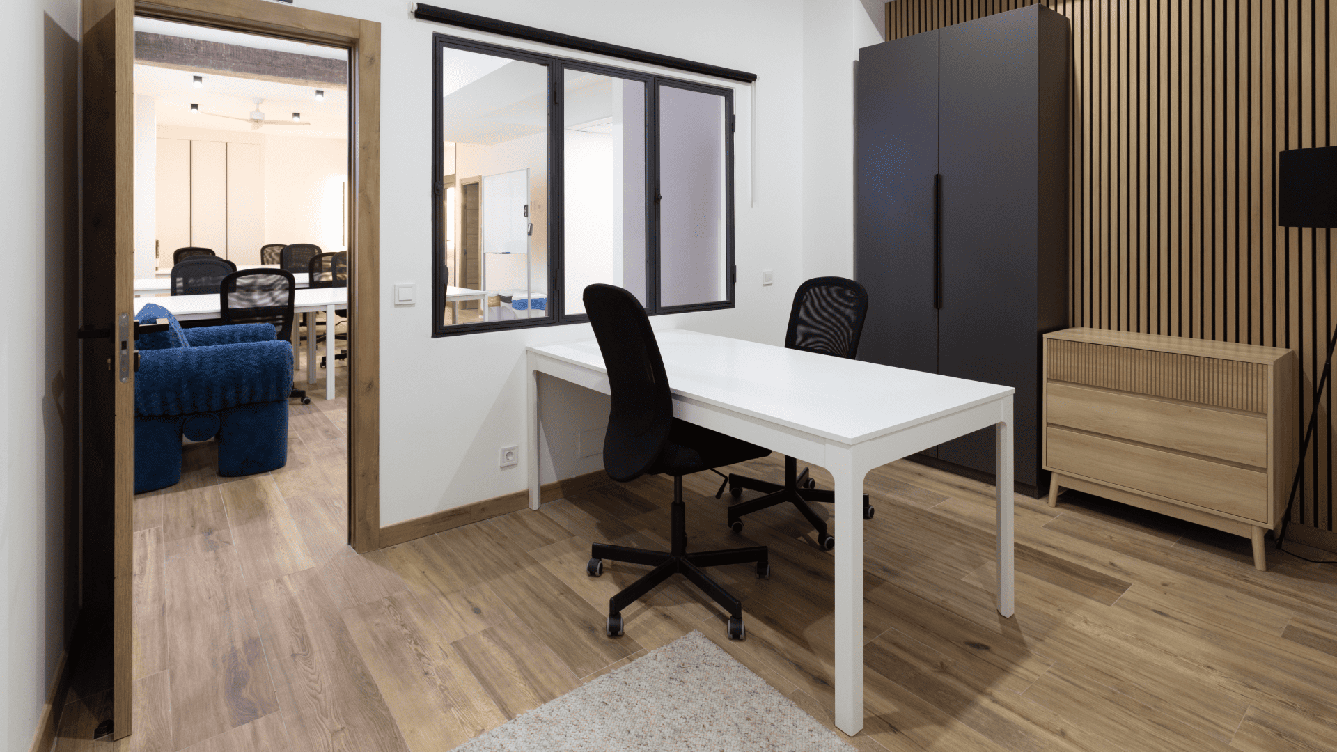 Office, studio, and professional meeting room rentals designed for creative, audiovisual, and corporate projects in Madrid. Our spaces are fully equipped and ready to use from day one, with editing suites, screening rooms, meeting rooms, and private offices, suitable for both small teams and larger productions. Rental includes high-speed Wi-Fi, functional common areas, terraces, restrooms, and complete facilities, all within a comfortable and professional environment that fosters concentration and collaboration. We also offer pet-friendly spaces and areas designed for relaxation between workdays. A flexible and practical solution for companies, production companies, and professionals seeking a well-equipped, accessible space prepared for the demands of creative projects.