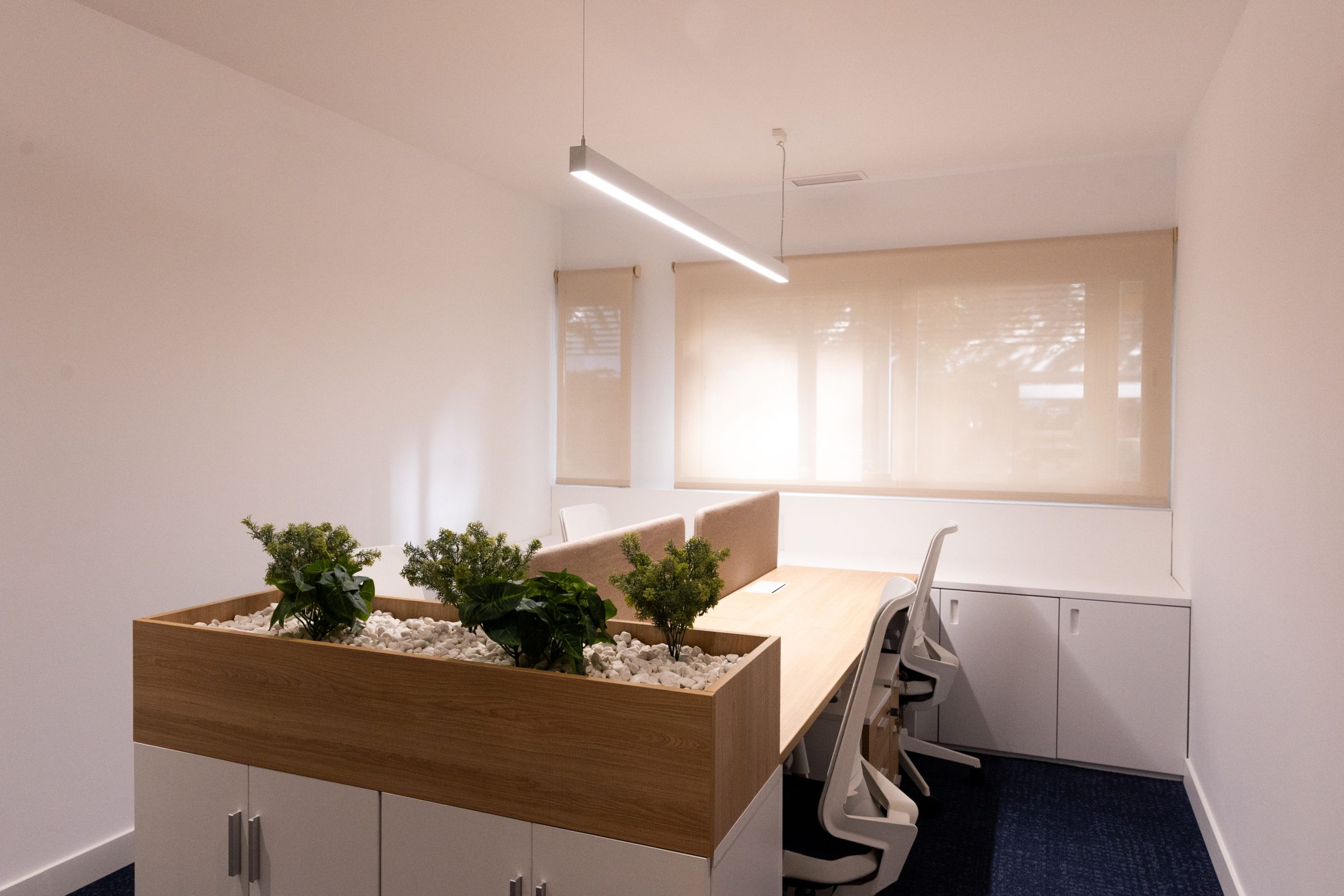 Legal Lab Legal Security is a premium business center located in one of Madrid's most prestigious business districts, next to Avenida de Alberto Alcocer, Paseo de la Castellana, and Plaza de Cuzco. We offer modern, newly renovated private offices and professional workspaces designed for lawyers, consultancies, and small businesses seeking a prestigious, flexible, and ready-to-use headquarters. The center features 24-hour access via ID cards, access control, and an alarm system outside of business hours. It offers a professional reception service, visitor and package management, and registered business address services. The spaces are fully equipped with ergonomic furniture, individual climate control, and high-speed internet access via a secure network and Wi-Fi. We also provide users with fully equipped meeting rooms, single and double focus rooms for video calls or quiet work, and meticulously maintained common areas. The center includes separate restrooms for clients and visitors, a kitchenette, and a fully equipped dining area with a refrigerator, dishwasher, and coffee. Cleaning and maintenance services are included. A professional and flexible solution for those who need a comfortable, functional work environment with a corporate image, without the costs of a traditional office.