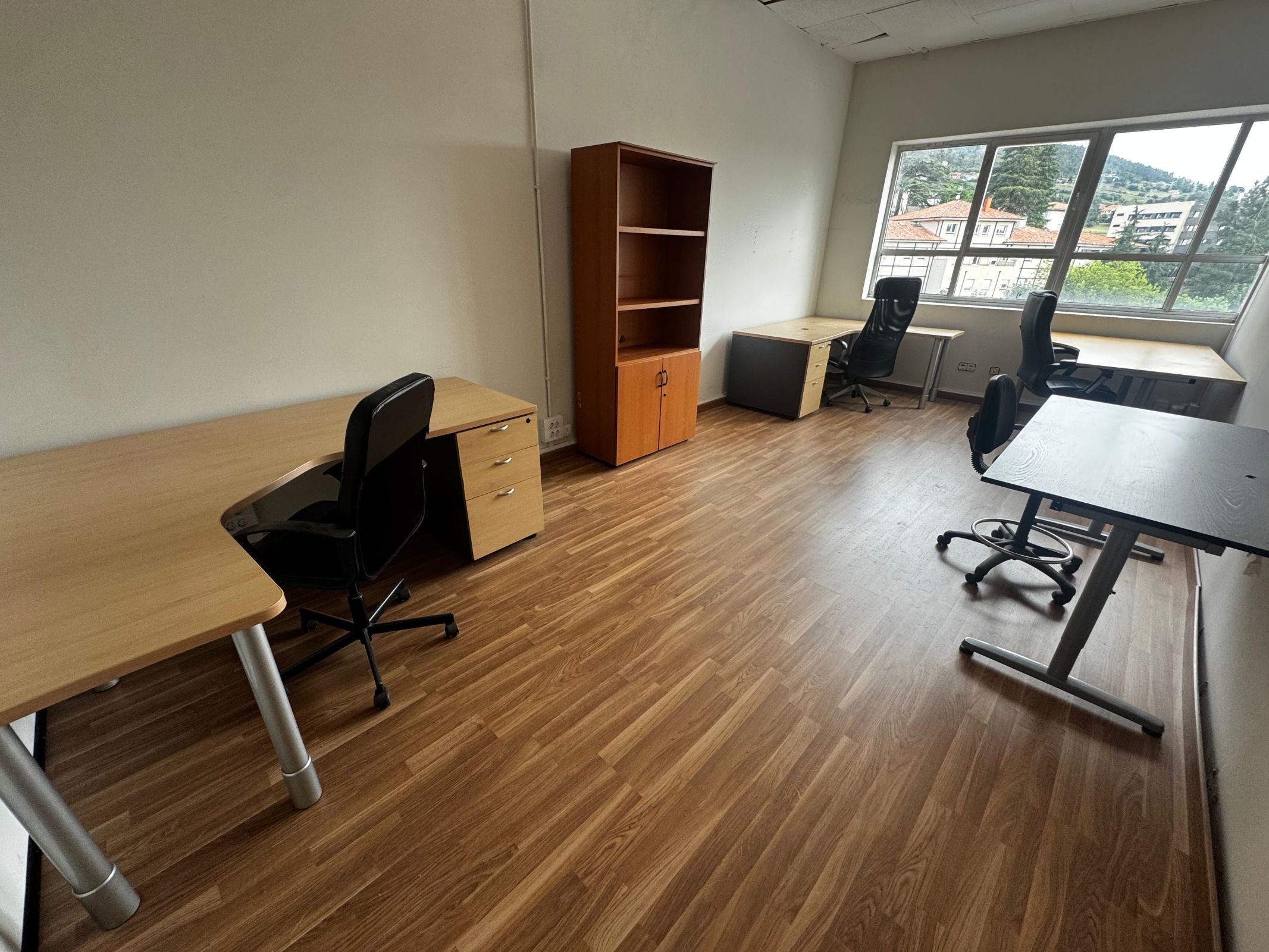 Coworking space with a waiting room, a break/coffee room, restrooms, and a meeting room. Private workstations and offices are available. Electricity, water, and internet are included. Good parking, highway access, and a 7-minute walk from the bus and train stations.