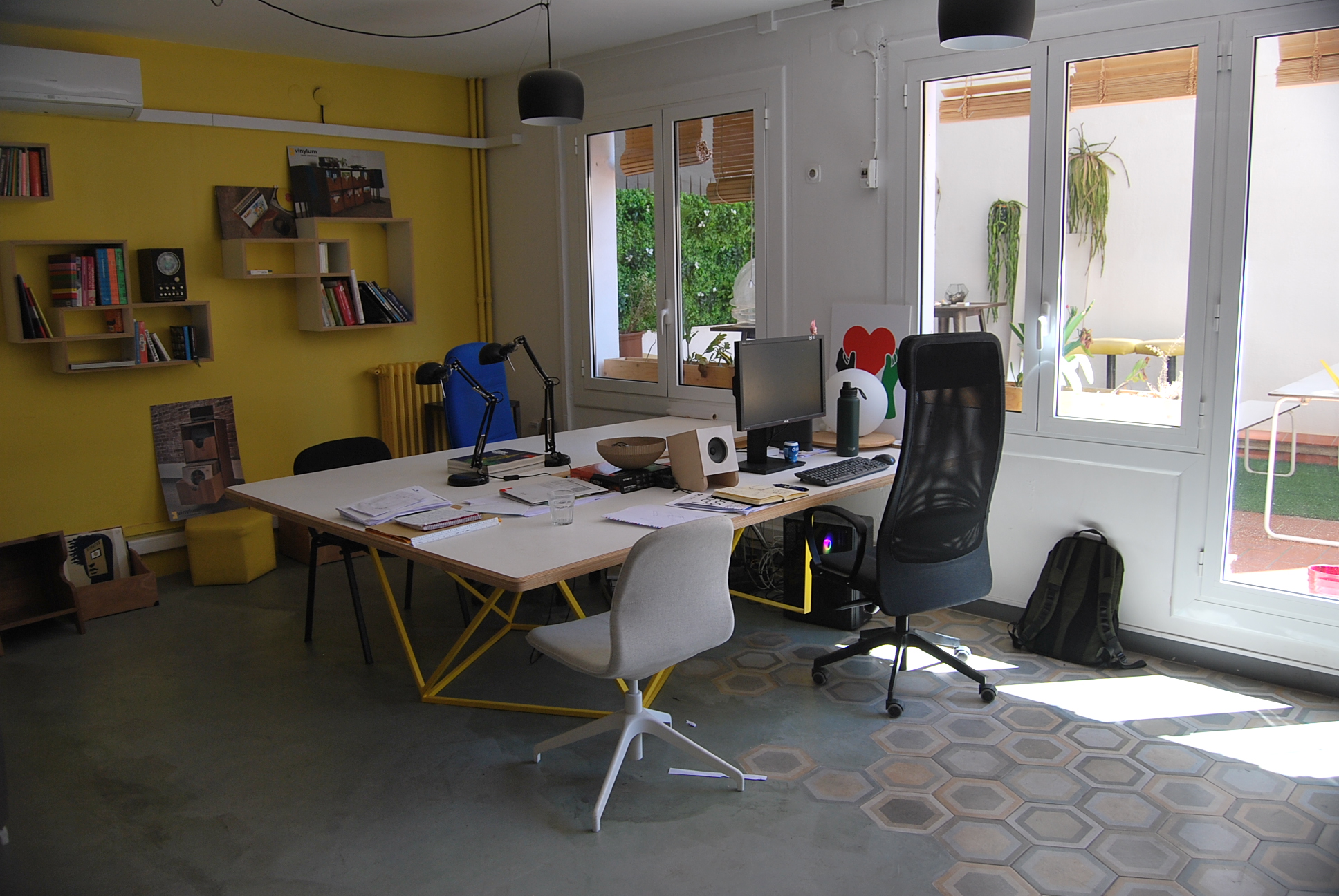 Es un despacho en el corazón del ensanche: Provenza-Aribau, es muy silencioso y luminoso, tiene un terracita bien con mesa. El ambiente es de trabajo, muy tranquilo, hacemos planos, renders, diseño, cuentas... La conexión a internet es muy buena, hay un micro y una mini nevera. Hay un conserje encantador en horario de oficina y nosotros hacemos horario standard de 9 a 14 y de 16 a 19 aprox.