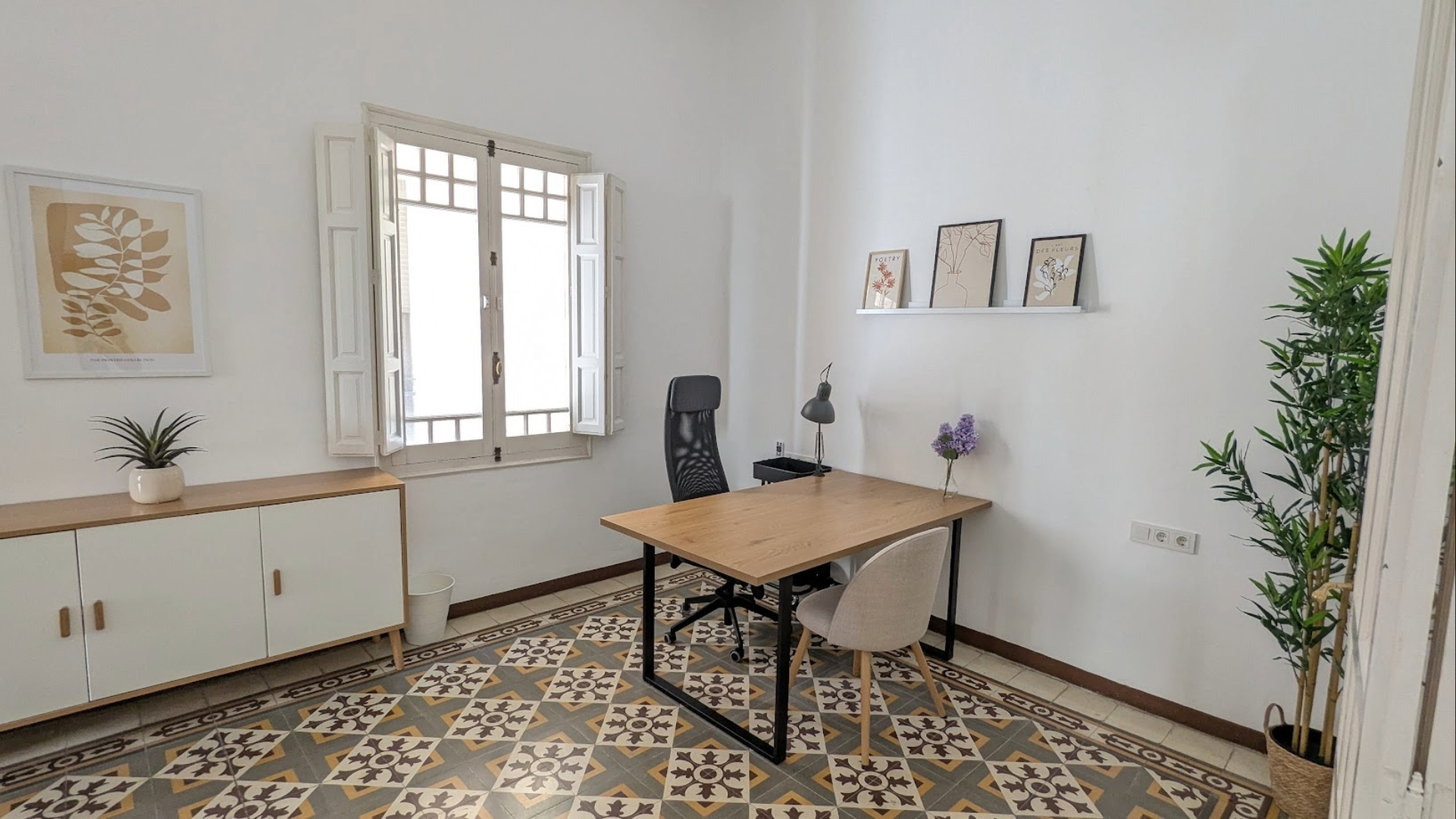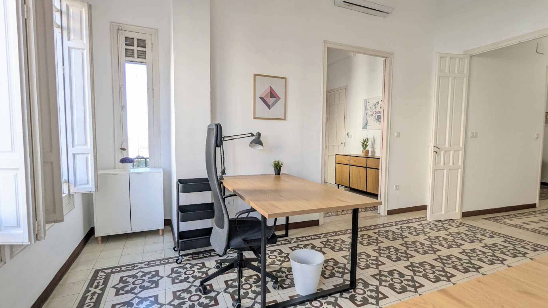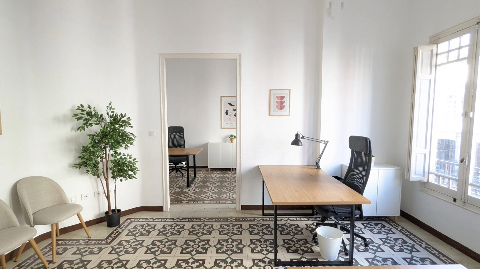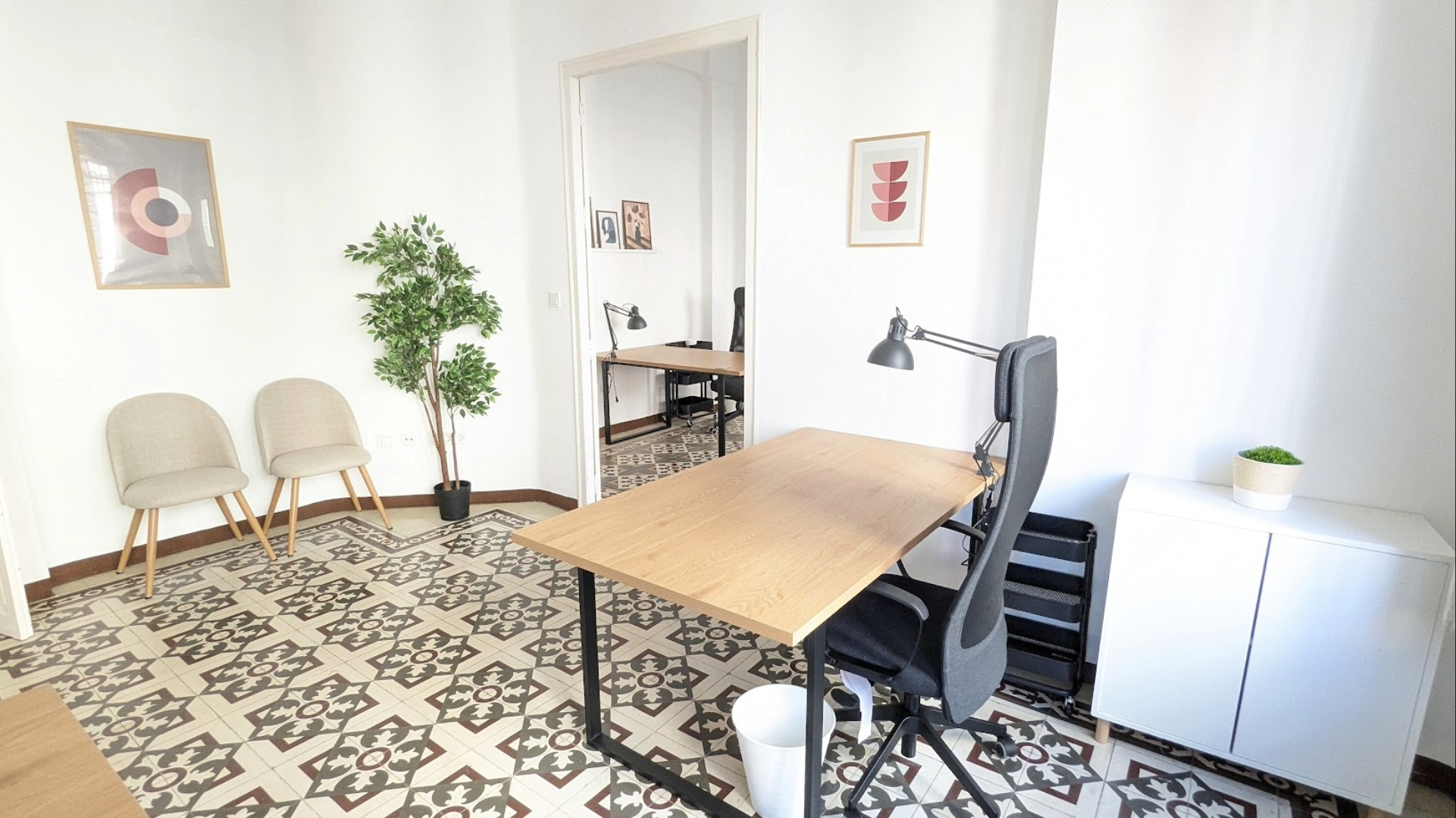 Solo compartes despacho con otra persona, con puerta independiente y posibilidad de cerrar para máxima privacidad.