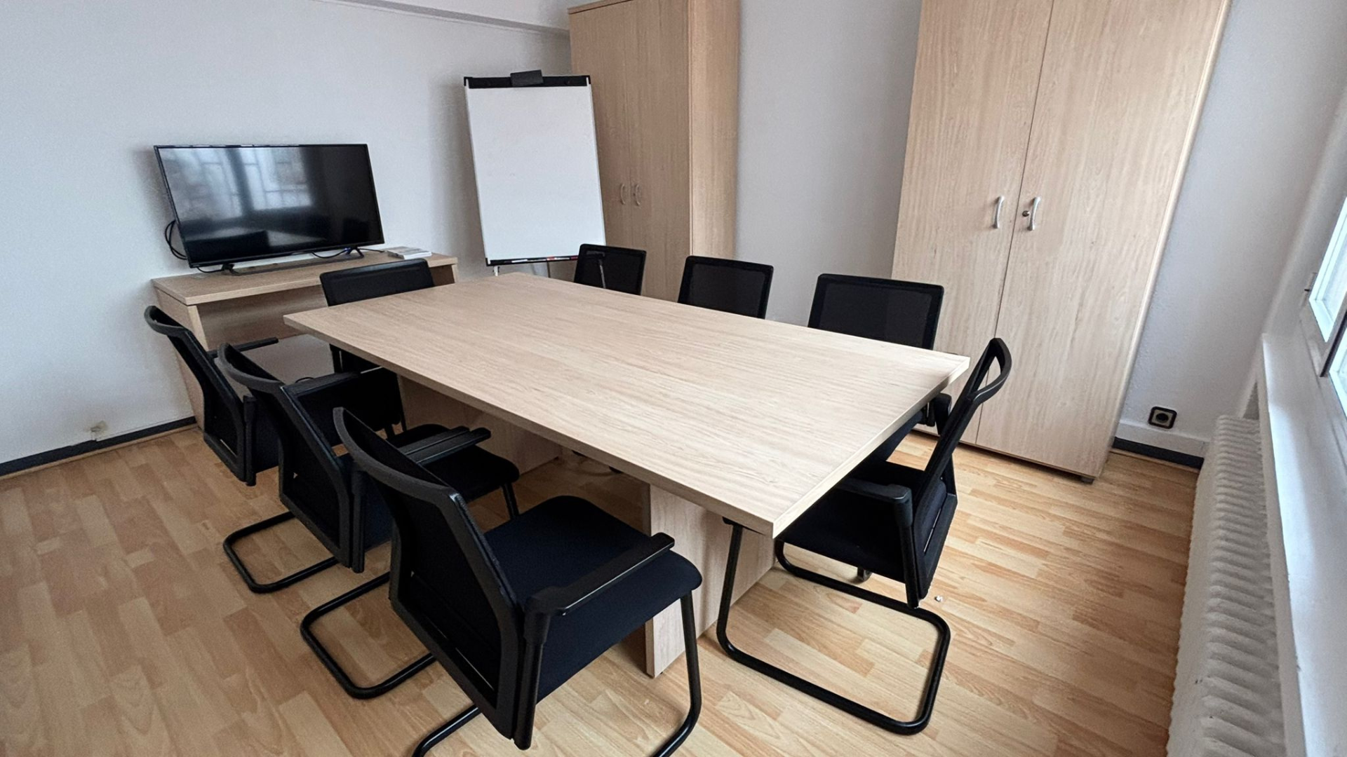 +Sala de reuniones, cuenta con un monitor, pizarra y capacidad de 8 personas.