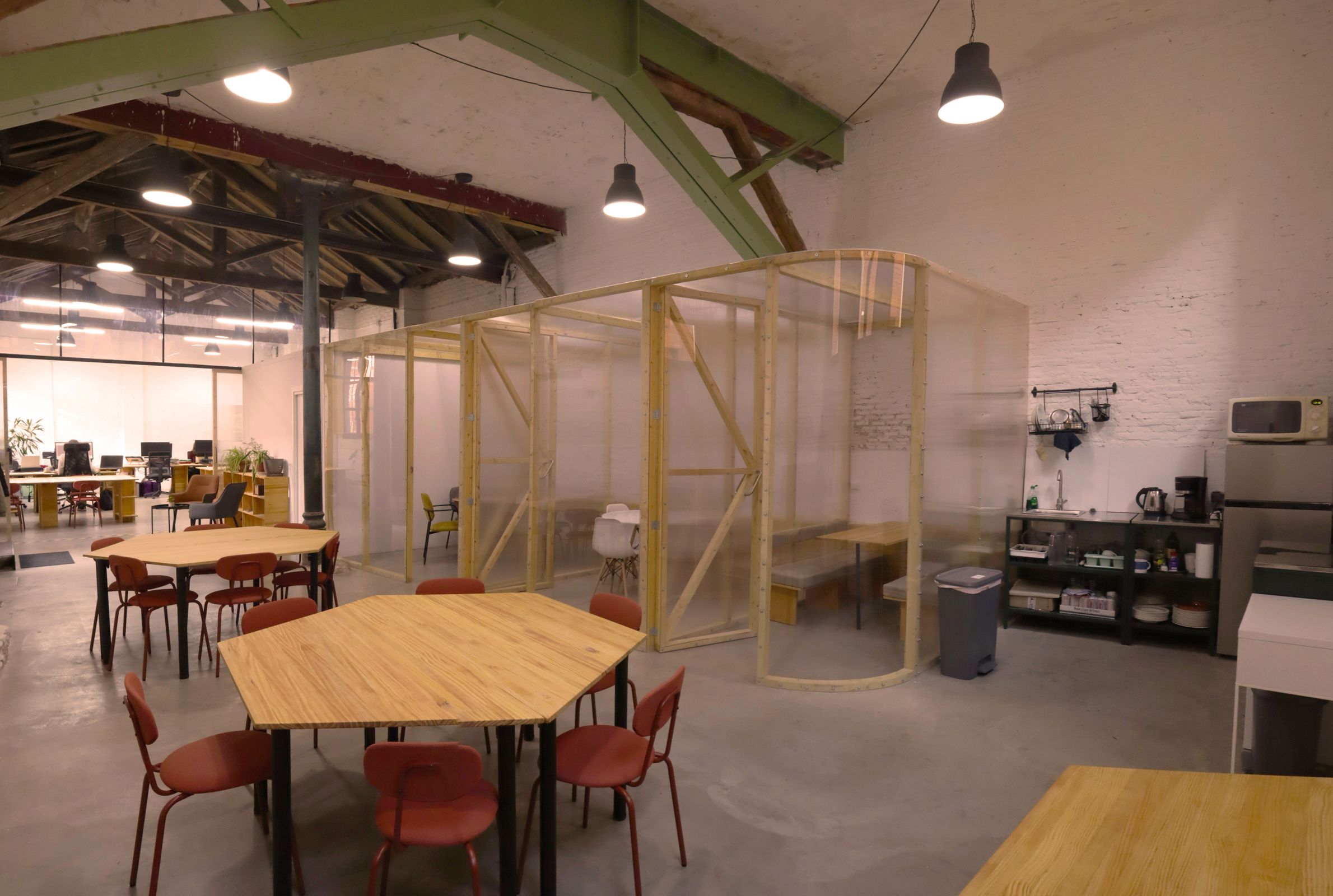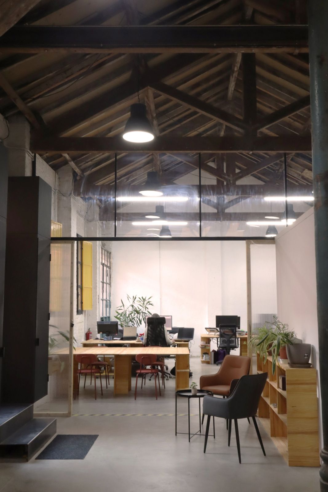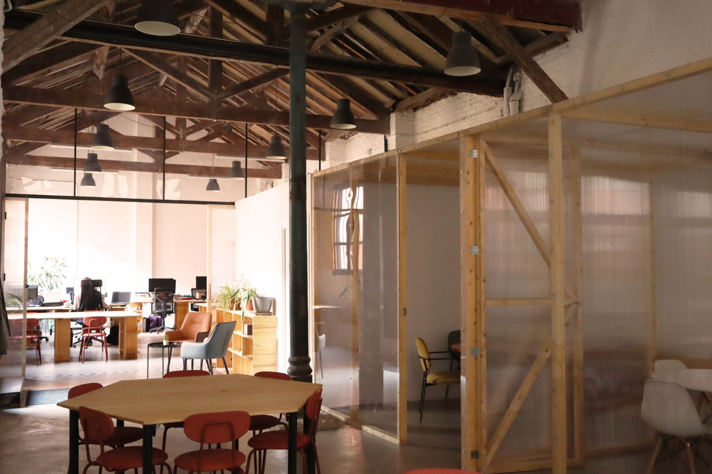 Antiguas caballerizas transformadas en oficina compartida, dentro de un bonito patio de manzana en Lavapiés. Rehabilitada con criterios sostenibles, este espacio está promovido por reBive, una cooperativa de arquitectura dedicada a la rehabilitación energética y bioclimática, y a la regeneración urbana con impacto social.