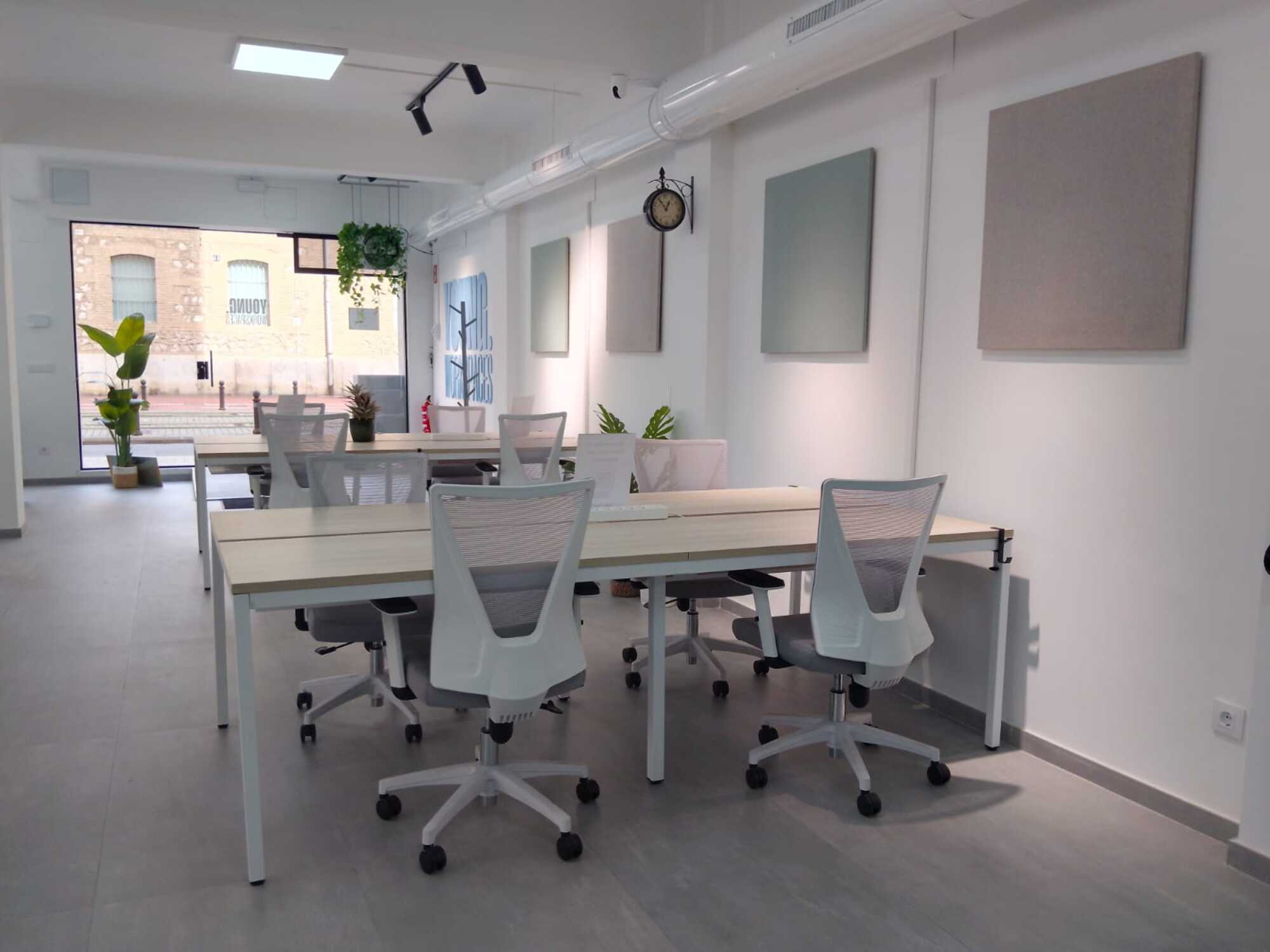 24/7 YOUNG WORKSPACES CABANYAL, TU ESCRITORIO. TUS REGLAS. Ubicado en el corazón del Cabanyal, nuestro nuevo espacio combina el trabajo con el inconfundible espíritu del barrio más ecléctico de Valencia. A solo unos minutos de la playa y rodeado de coloridas fachadas, bares de tapas y el bullicio de la creatividad, este espacio es perfecto para aquellos que buscan inspiración nada más salir por la puerta. Tanto si te dedicas al diseño, a la programación remota o a lanzar tu próxima gran idea, Cabanyal te ofrece la libertad de trabajar a tu manera: con el sol, el mar y la espontaneidad siempre al alcance de la mano. Nuestros servicios: +10 puestos de trabajo. Espacios de coworking fijos y flexibles. Aire acondicionado y calefacción. Acceso 24/7. Phone Booth para llamadas. WiFi de alta velocidad. Cocina totalmente equipada. Luz natural. Cerca del tranvía, el metro y el autobús.